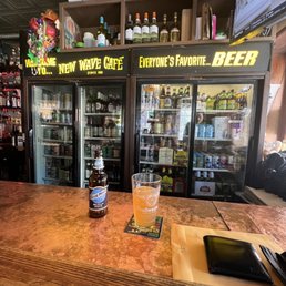 I'm new to new wave but I absolutely love the vibe here especially for game days. There's lots of regulars that are here to watch their team but there's so much room inside you can see a tv from anywhere. Recently discovered the dart board and pool tables that are tucked way in the back. So far we've tried the cheesesteak and the wings and both were 10/10. The wings were crispy and a really good portion, they serve by weight rather than by wing count so you don't get jipped on small birds. The cheesesteak was huge as expected and comes with fries. I recommend it with provolone. Lots of beer options, several local.